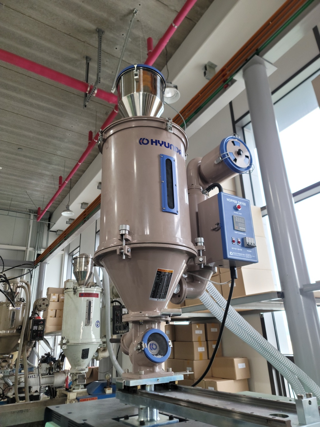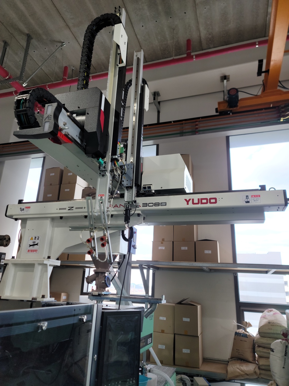 약 7m 정도의 높은 공간 구조 를 활용해 복층 형태로 자재와 완제품을 보관하고 있었는데, 현장 곳곳에 정리된 제품들을 보면서 실제 생산 규모를 실감할 수 있었다.