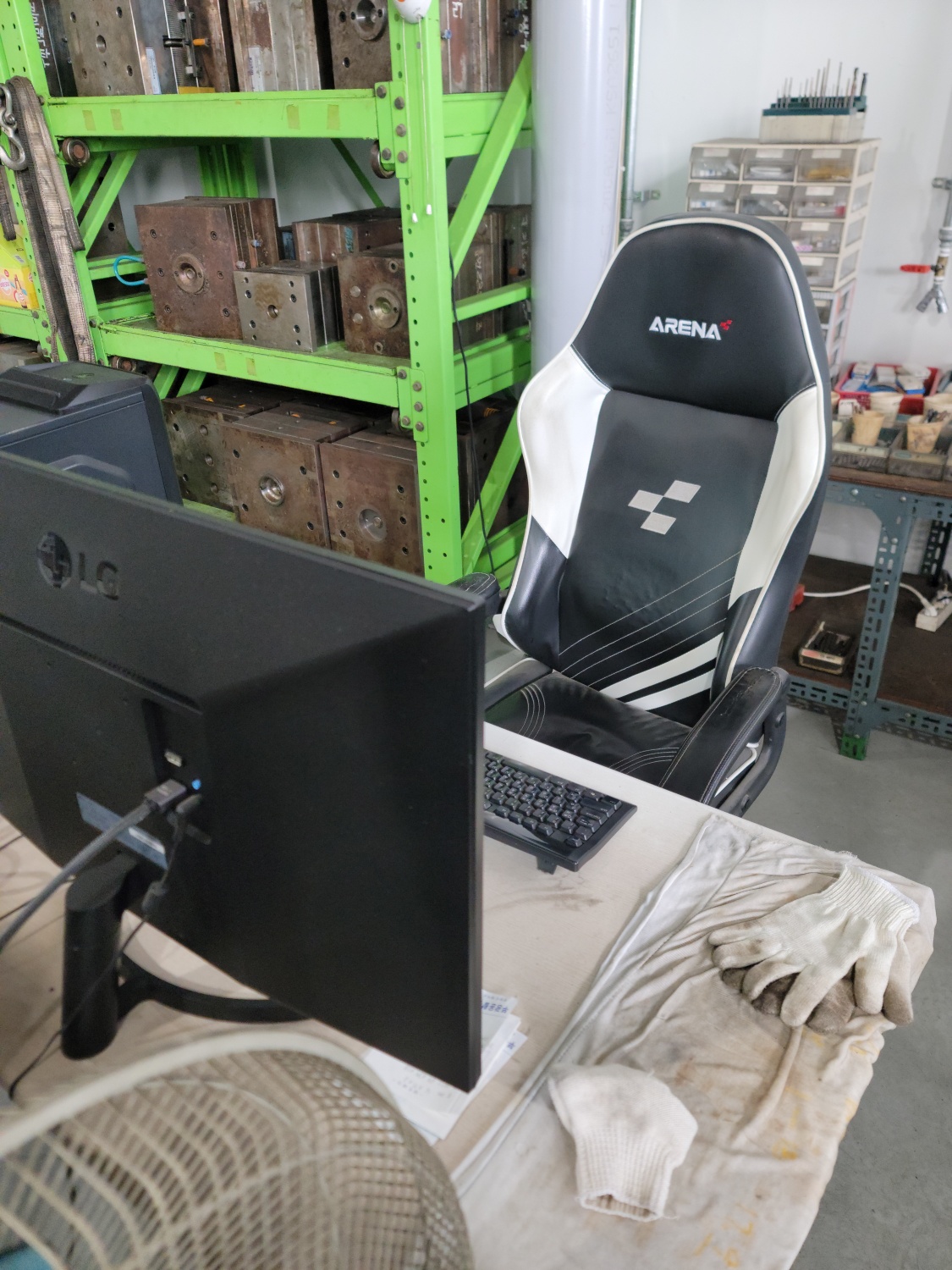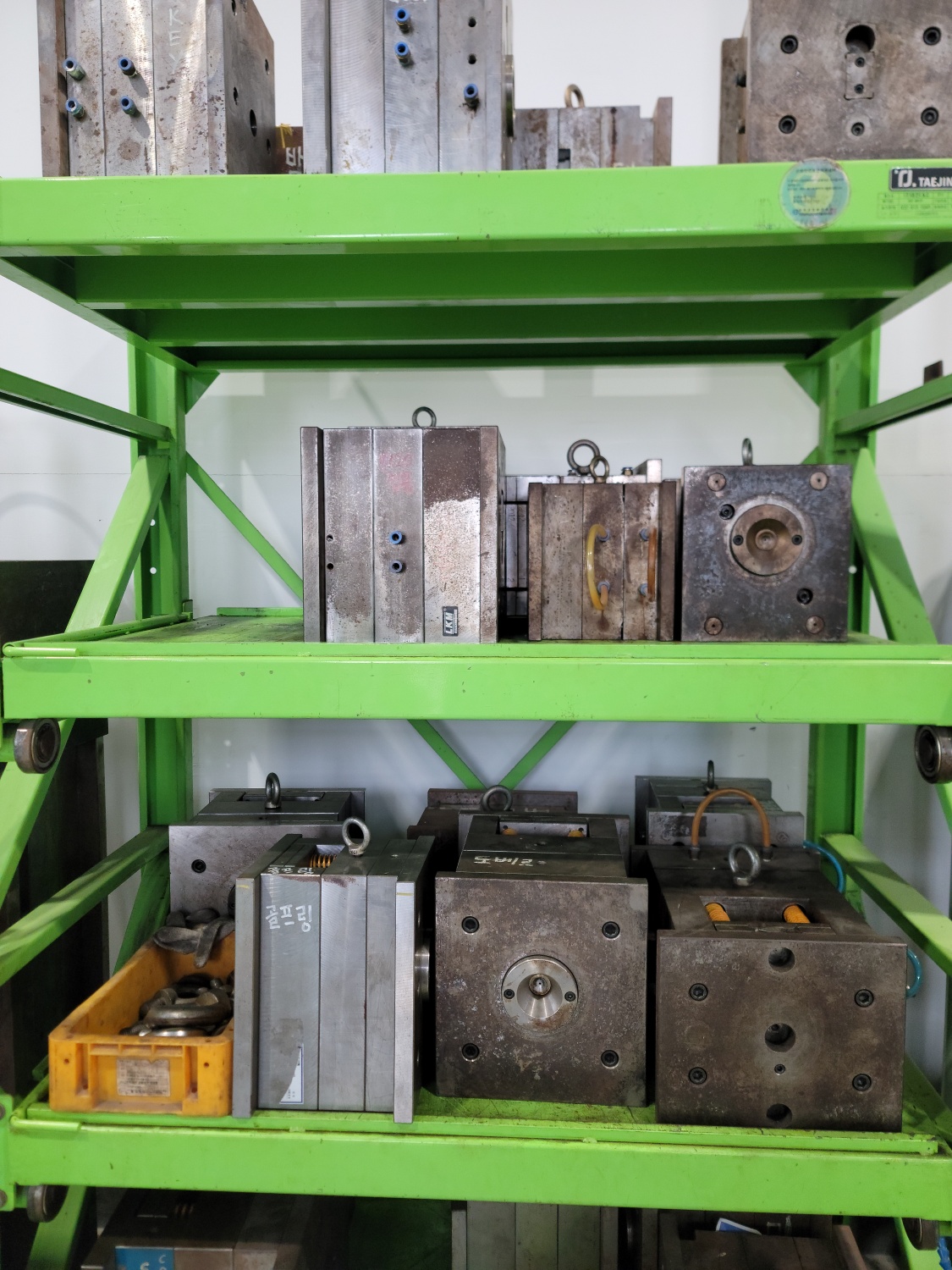 공장 내부로 들어가 보니 여러 개의 사출금형 이 정리되어 있었고, 실제 금형이 보관되고 관리되는 모습을 가까이에서 확인할 수 있었다.